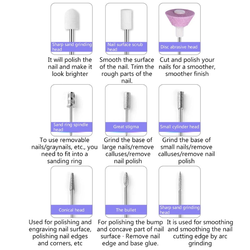 Multifunctional manicure machine set,different kinds of drill bits used for grinding,polishing, removing gel polish,ect.
